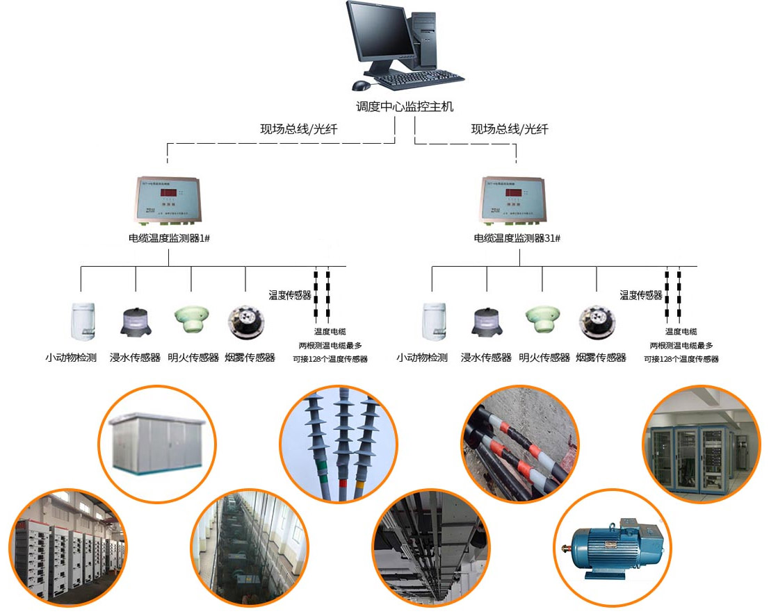 單條總線電纜可支持長達(dá)至1000米,單條測溫電纜可掛接128個 測溫傳感器